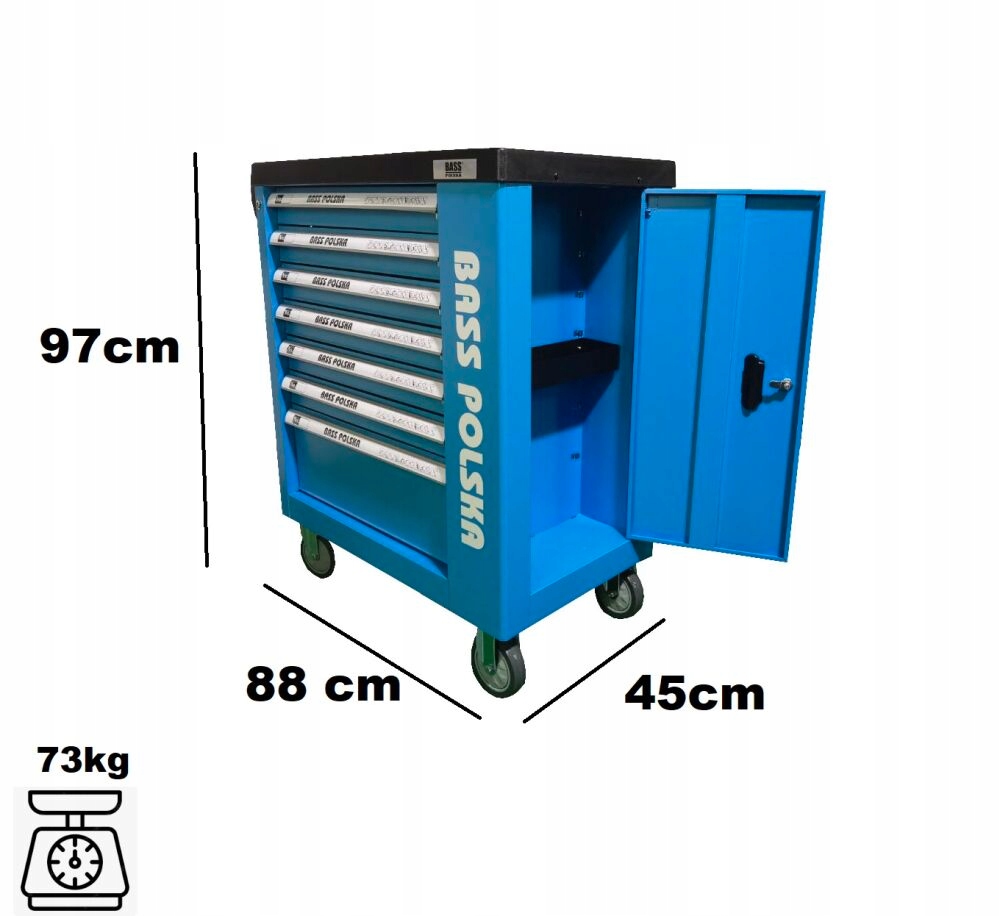 - Професійна інструментальна шафа з обладнанням Bass Polska, призначена для автомобільних та автомобільних майстерень і сервісів.