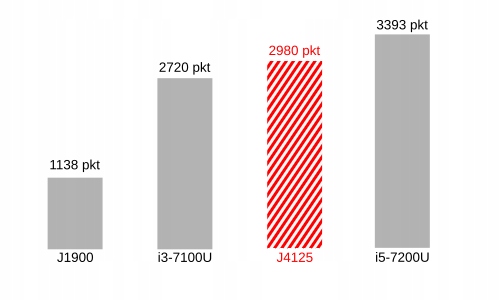 Наприклад: Celeron J4125 майже втричі швидший за Celeron J1900, майже на 10% швидший за процесори Core i3-7100U