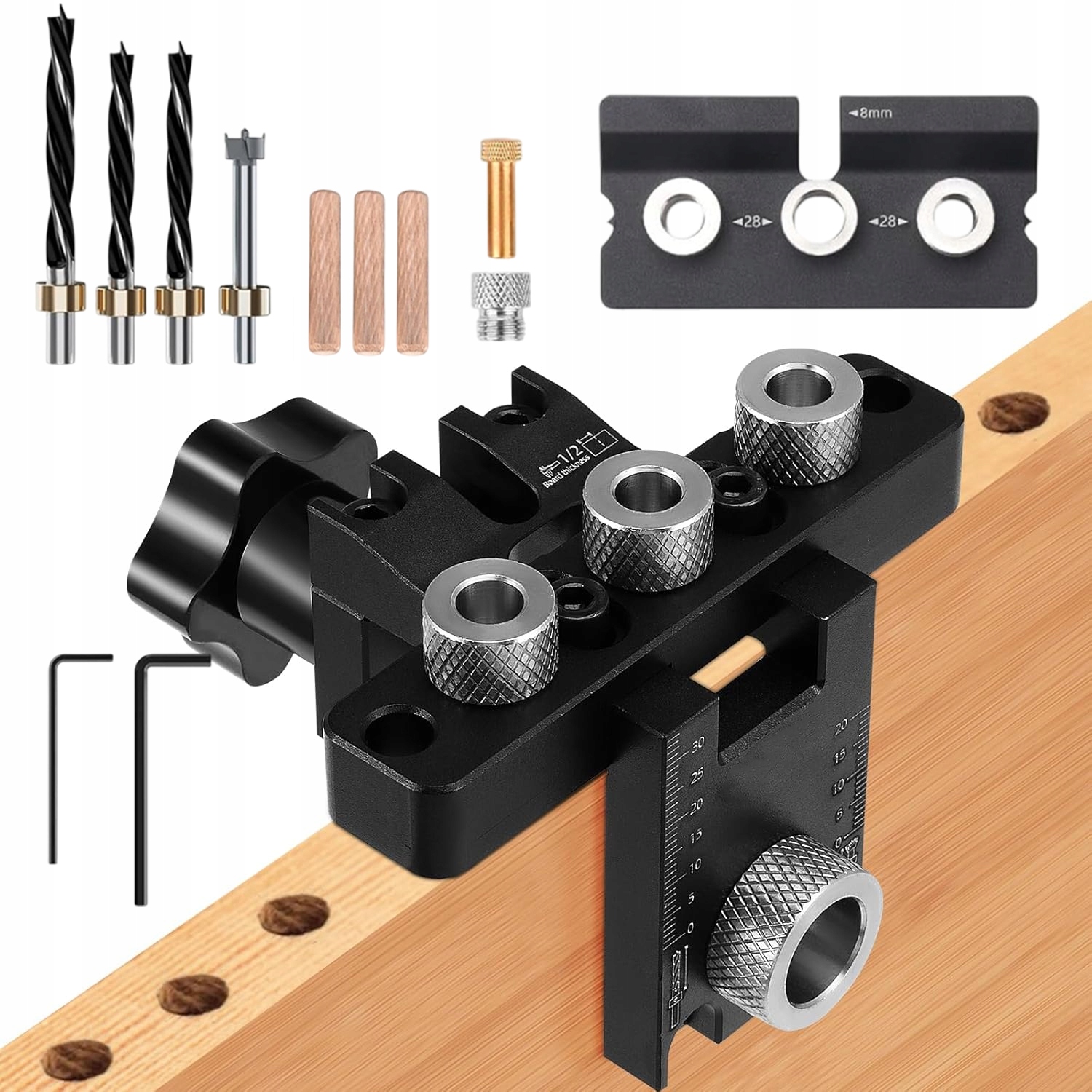 ➡plive -набір : регульований шаблон для свердління кишенькових отворів містить 1 3 в 1 шаблон для свердління кишенькових отворів, 1 латунний обмежувач, 3 свердла (8 мм, 10 мм, 15 мм), 3 дерев’яні шпильки, 2 клавіш, 1 готове позиціонування.