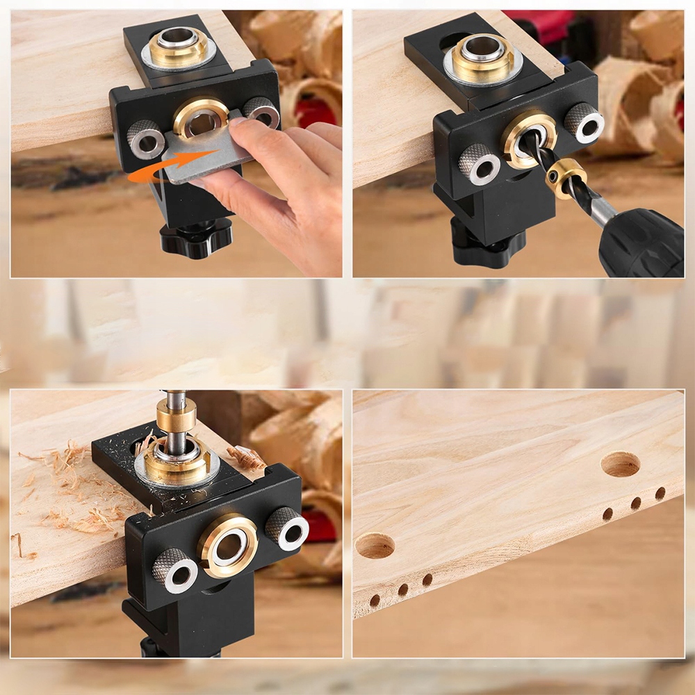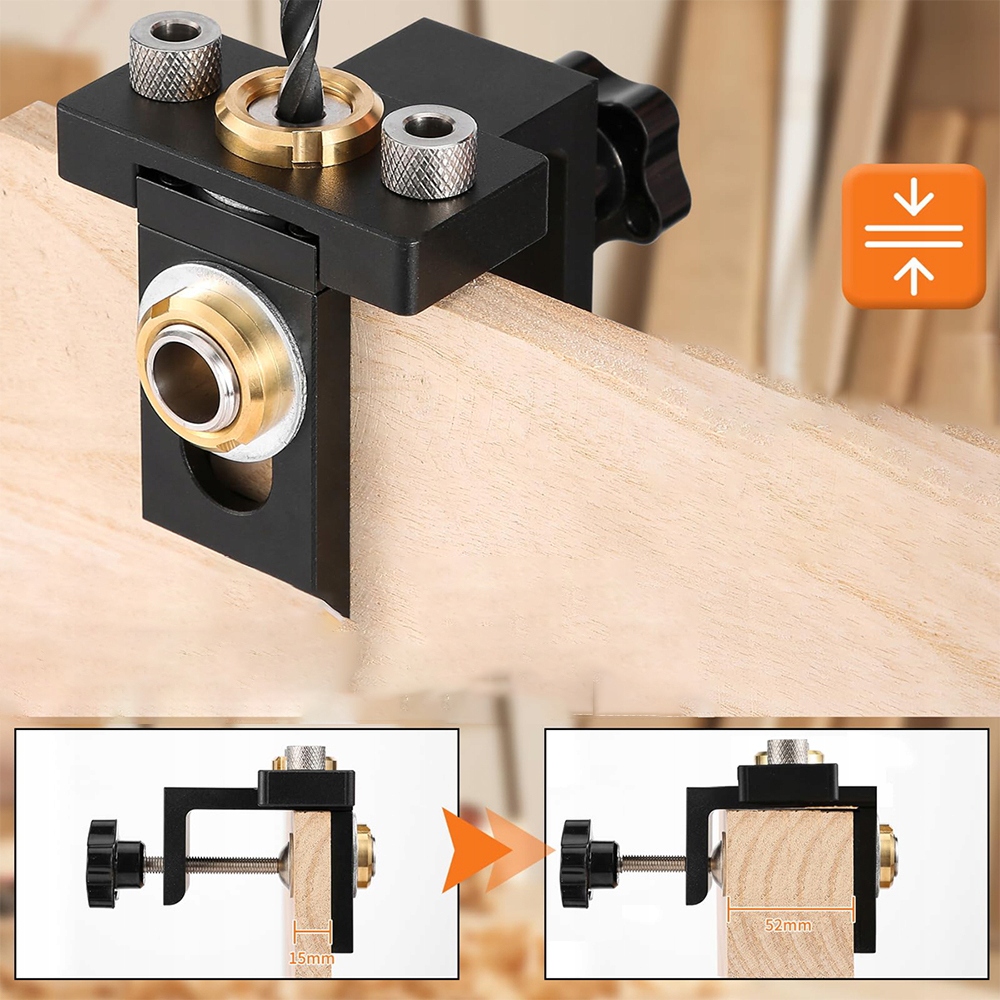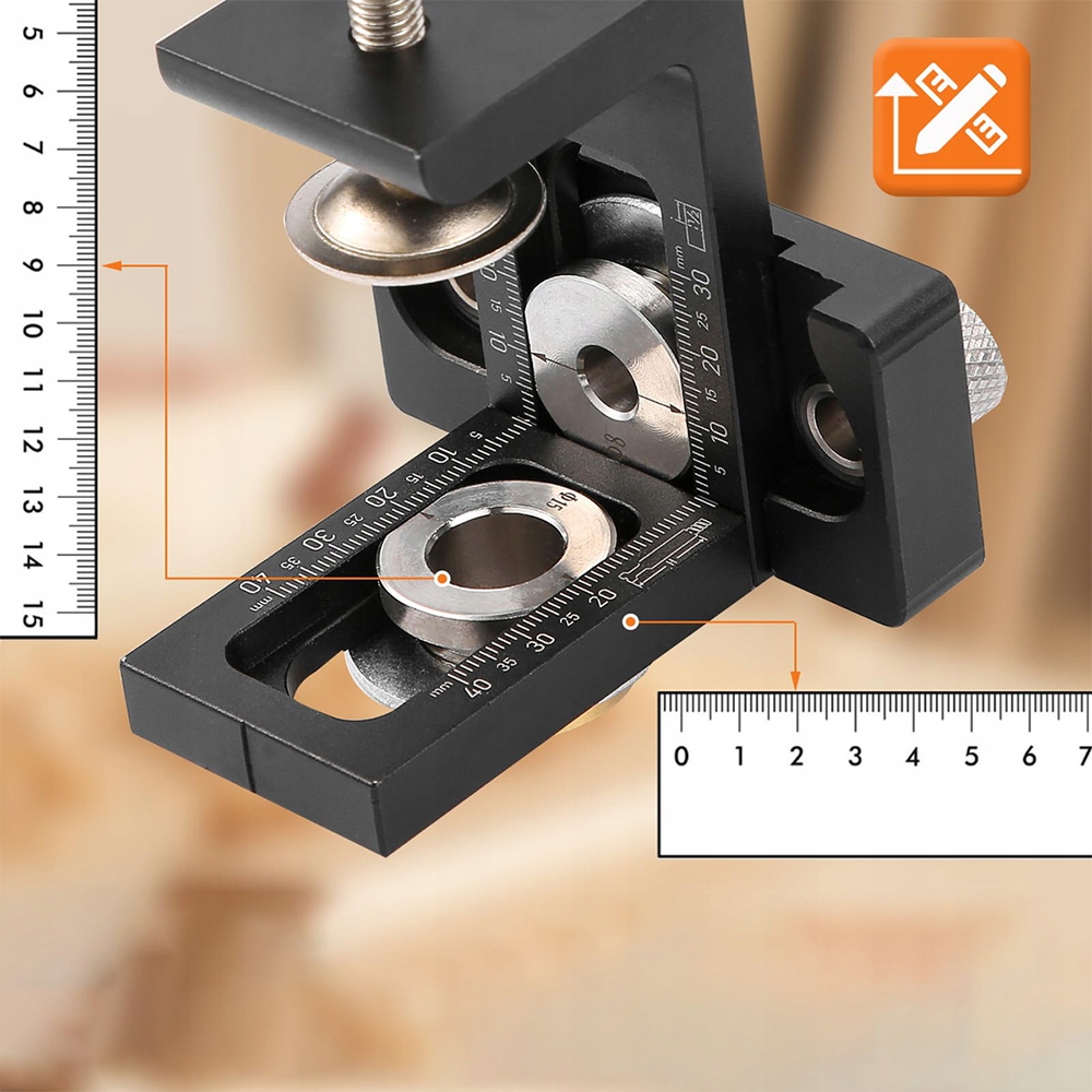 ✅ 【точна шкала】: Шаблон буріння має чіткі та точні шкали, що дозволяють точно відрегулювати висоту та глибину буріння залежно від товщини дошки. Оснащений свердлами 8 мм/10 мм/15 мм для задоволення ваших вимог до різних діаметрів отворів.