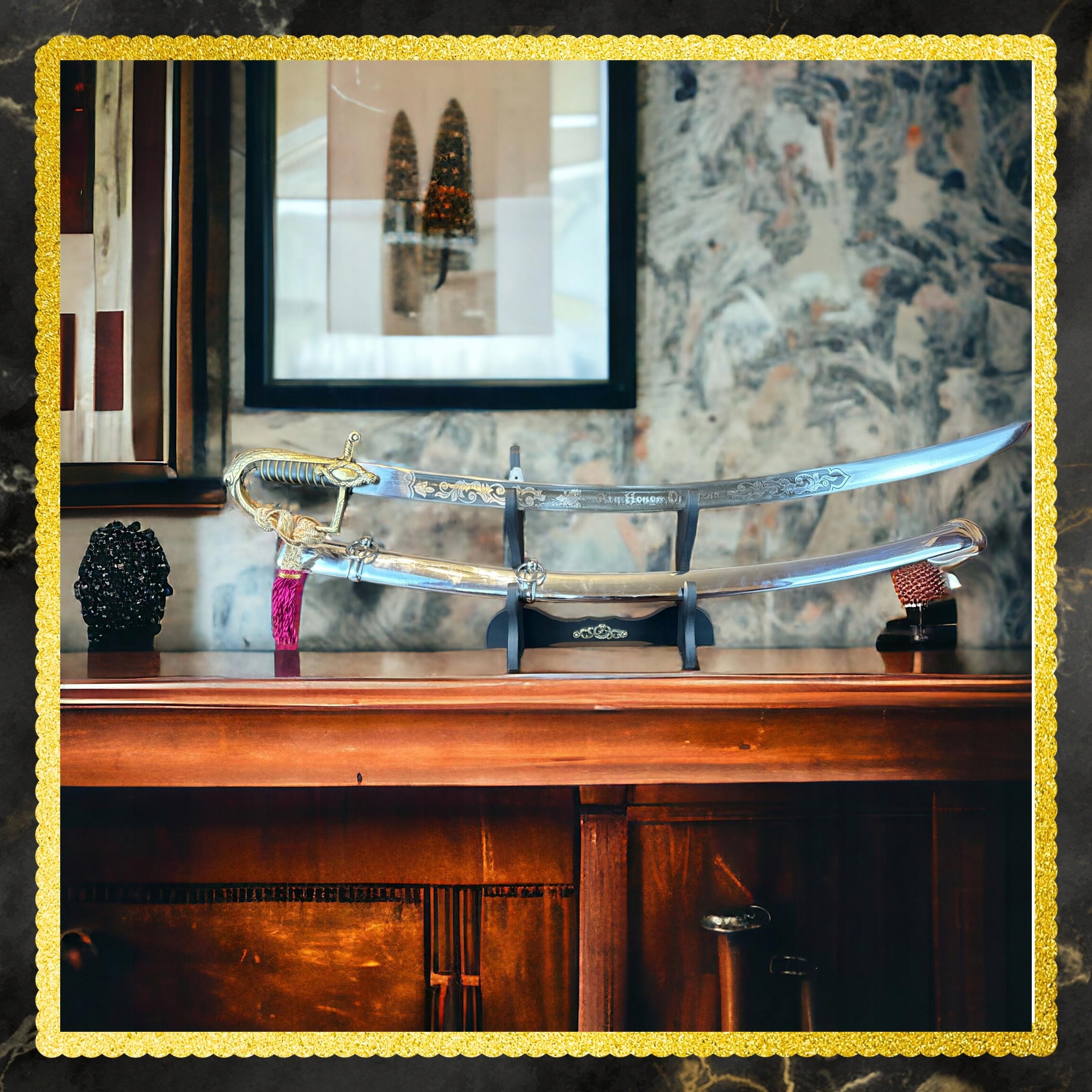 ❇️Лезо виготовлене з вуглецевої сталі, поліроване для отримання однорідної матової поверхні. Ця шабля не заточена і не пристосована для фехтування. Рекомендується консервувати лезо тонким шаром оливкової олії, щоб зберегти його високу якість протягом багатьох років. Піхви виготовлені з хромованої сталі і не потребують додаткового обслуговування.