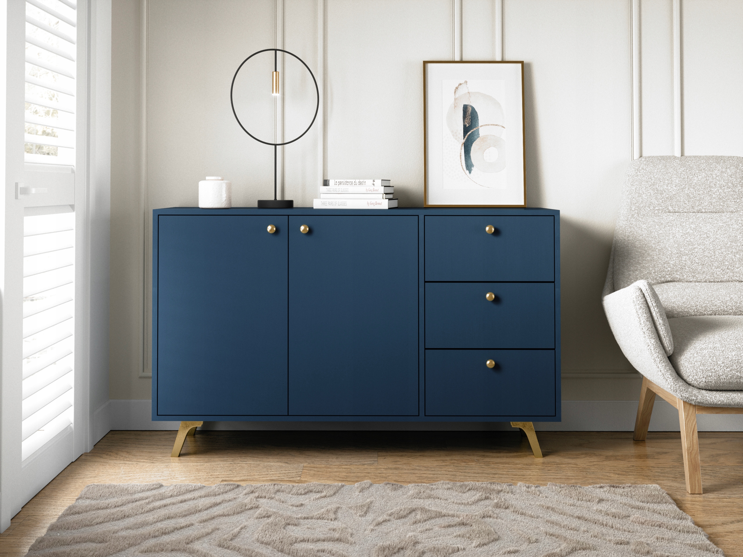 - шафа: вішалка, три ящики, полиці