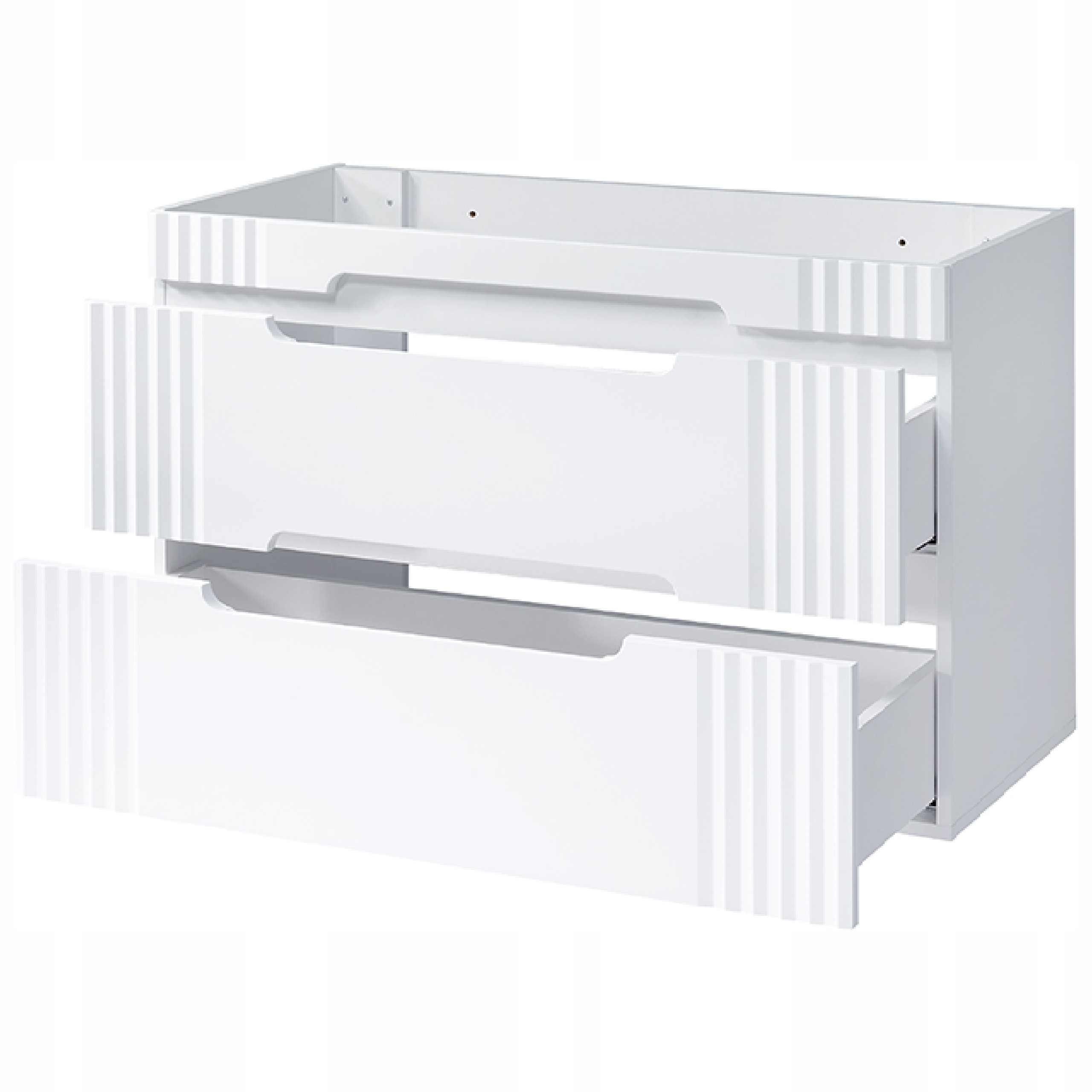 колекція Fiji у кольорі альпійського білого з розірваними фронтами - ідеальне рішення для тих, хто хоче створити елегантний, сучасний та функціональний простір у ванній кімнаті.