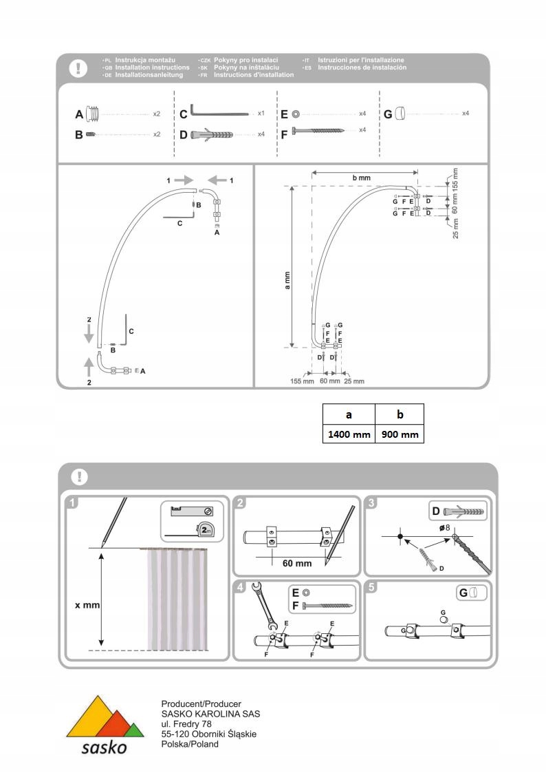 У набір входить: білий алюмінієвий стрижень діаметром 25 мм (з'єднуються 3 елементи), штифти FISCHER 8 мм (4 шт.), маскувальні ковпачки (4 шт.), заглушки (2 шт.). шт.), гвинти натискні пластини (2 шт.), шестигранний ключ, інструкція по збірці.
