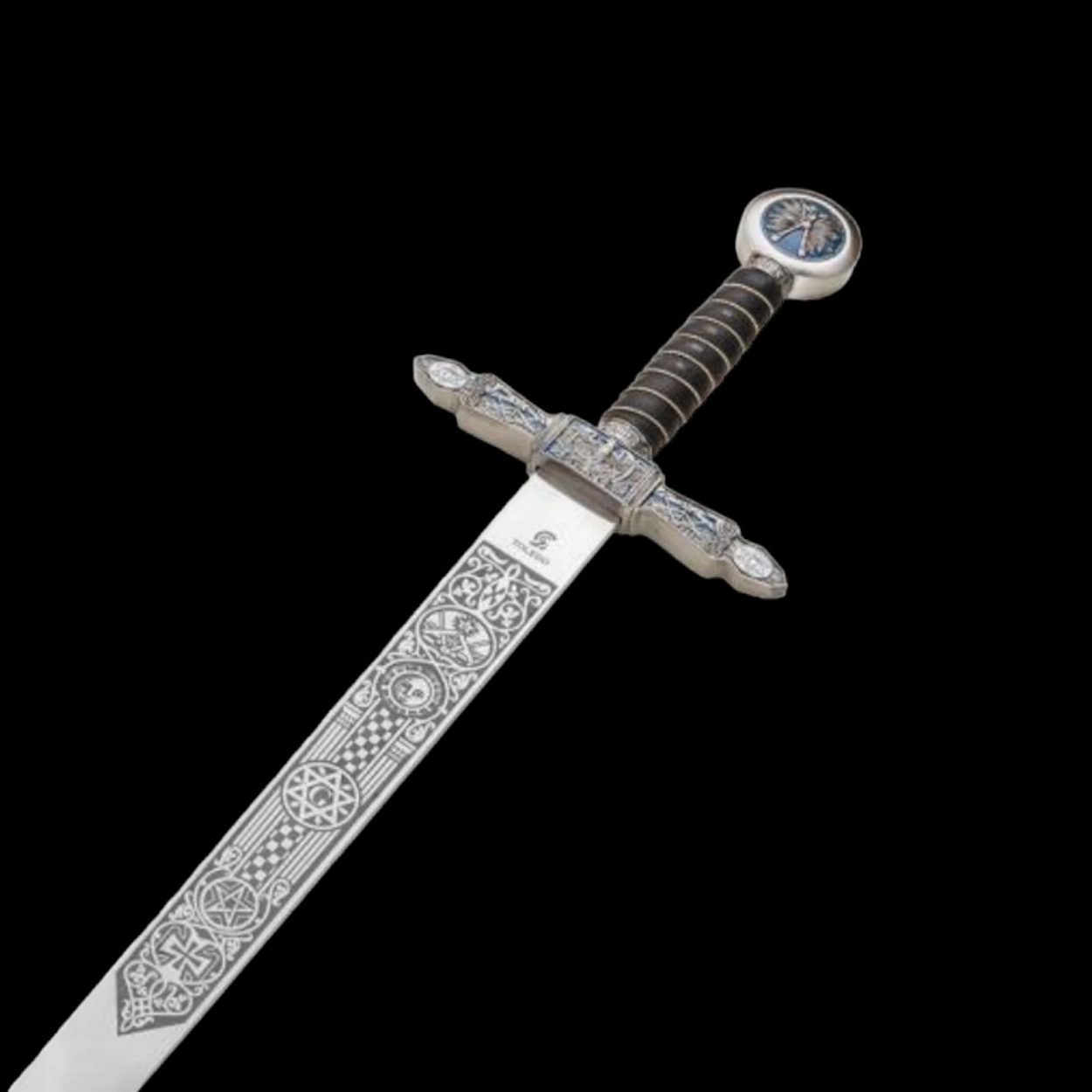 Чудовий меч був виготовлений з високої карбона, хромової толеної сталі. Дуже багато прикрашена ручка має видатну круглу голову з масонськими знаками. Ручка ручки, покрита чорною шкірою, і переплітається з латунним дротом. Масивний Джелек, багатий прикрашені прикраси, що містять масонські символи? Циркова та вуглецева мембрана означає рівновагу та абсолютні сили, а в середині зображення орла. Лезо в заставі має гравіровані символи масонства: сонце? Символ розуму та зірок? Символи знань та досконалості.