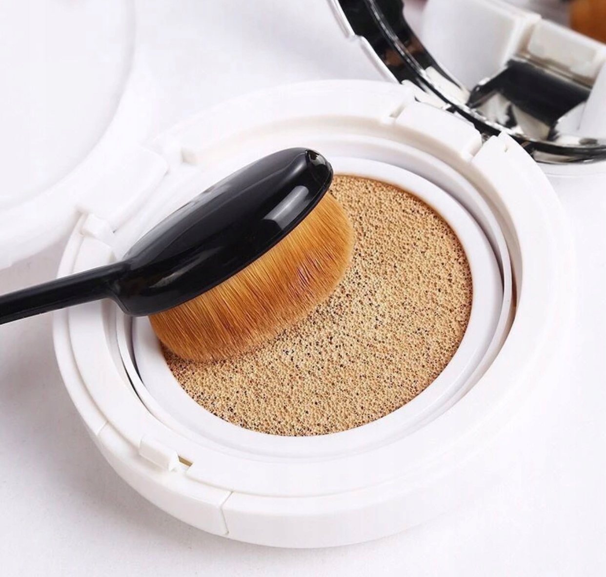 Дозволяє створювати бездоганний макіяж без смуг, з мінімальною витратою продукту. Виготовляється з матеріалу зі спеціальною структурою. Широка основа дозволяє наносити макіяж лише кількома рухами.