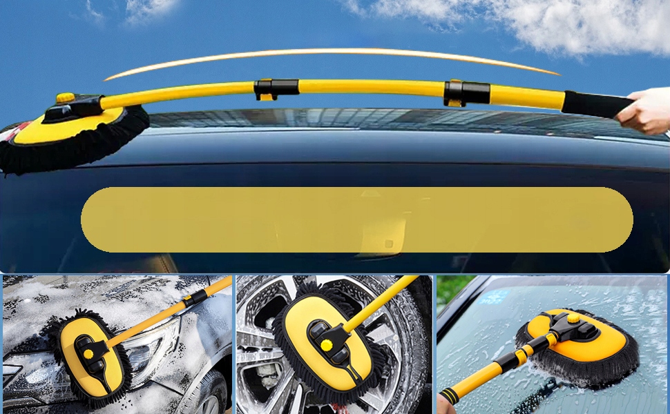 - ✔️ 【Вигнутий дизайн】: на відміну від більшості щіток для миття автомобіля з прямими стрижнями, швабра для миття автомобіля мийка розроблена з вигнутими стрижнями для економії робочої сили. Ви можете легко почистити дах свого автомобіля.