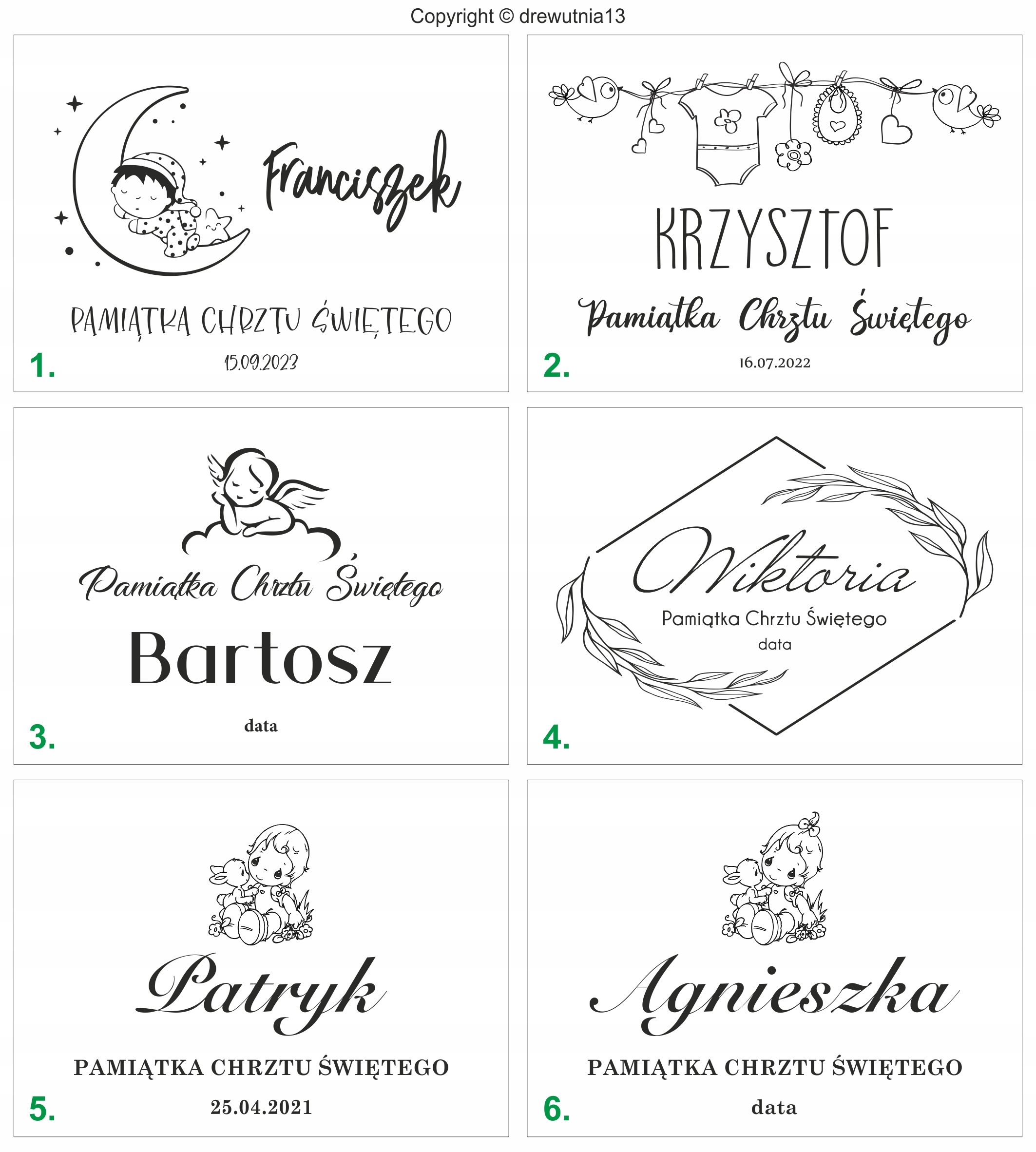 - 6 шт. гравірованих дощок: як сувенір, на щастя, на майбутнє, на перший рік, на перший крок, на перший зуб (можна надати власні тексти для гравіювання);