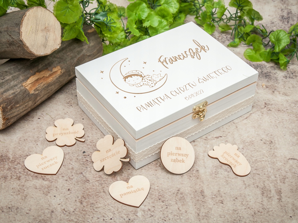 Дерев'яна скринька з оригінальним гравіюванням імені - унікальний подарунок на хрещення.