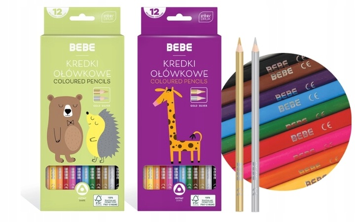 ➡️1x Трикутні олівці, 12 кольорів BeBe Kids FSC 100%