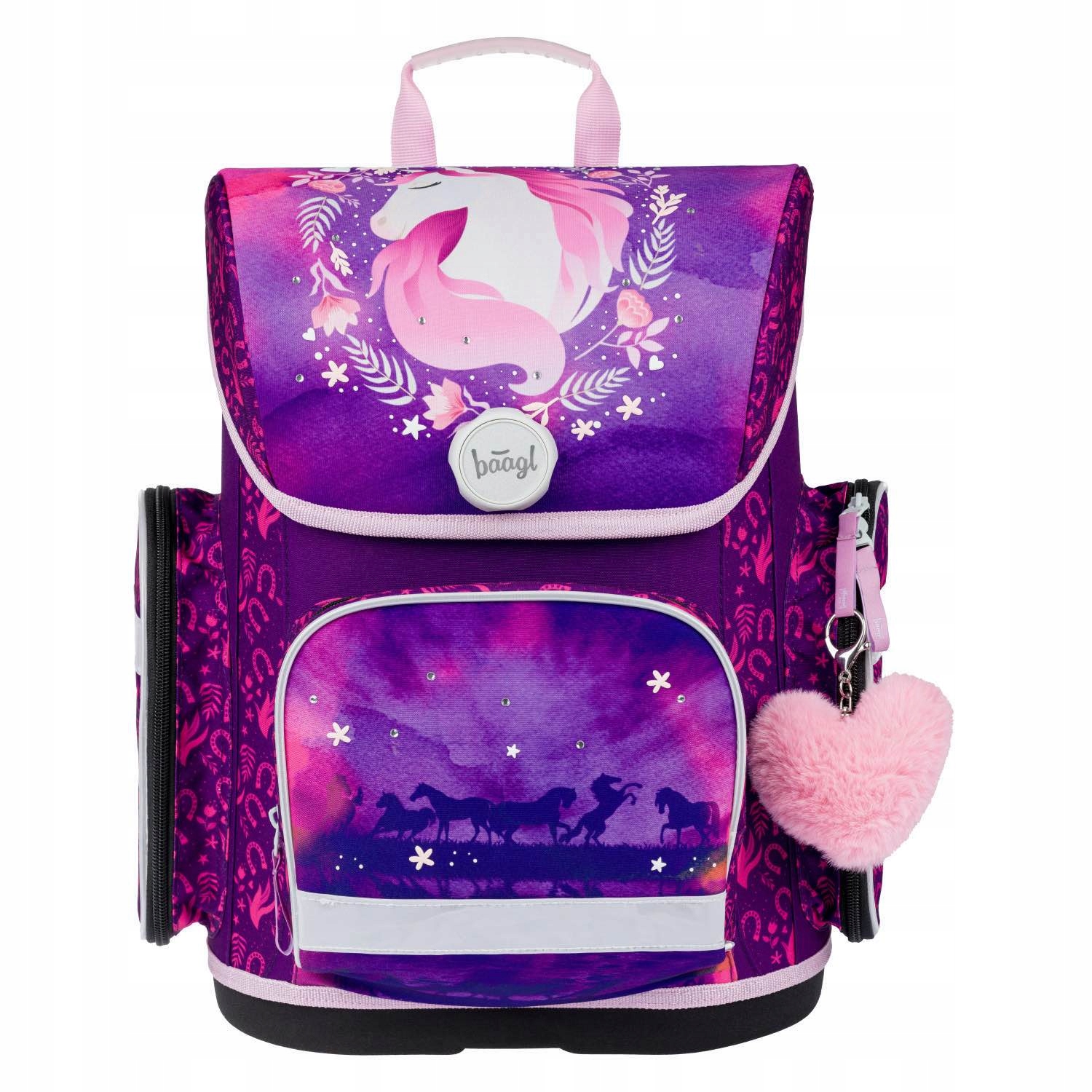 Фіолетовий портфель ERGO для дівчинки з мотивом коня підходить для 1 класу початкової школи. Унікальна магнітна застібка Fidlock полегшує користування першокласникам.