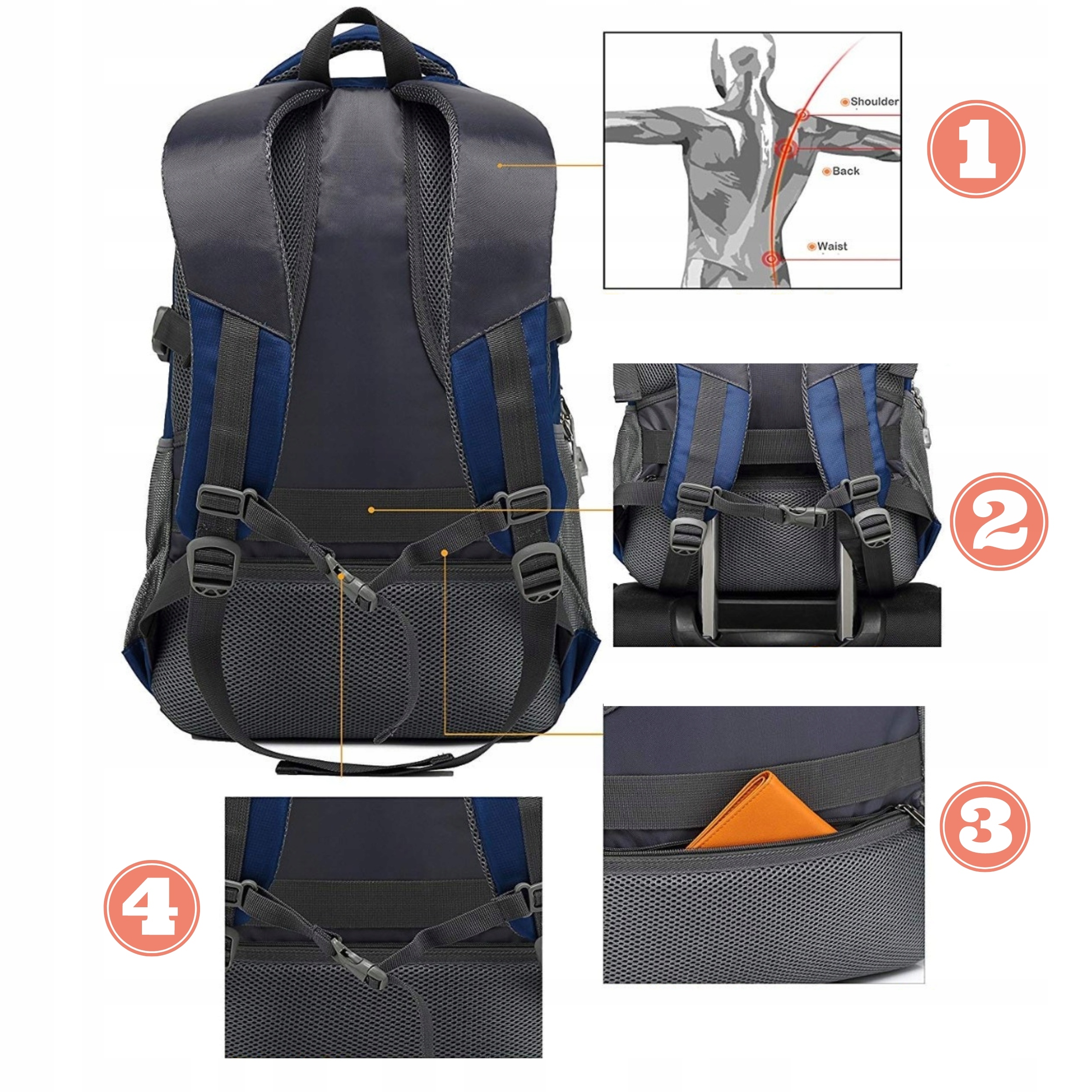 Дизайн лямок дозволяє рюкзаку помістити в багаж або валізу для легшого транспортування, регульовані нагрудні лямки з пряжкою надійно тримають лямки на місці, СИСТЕМА AIR FLOW SYSTEM, ергономічна форма рюкзака з вигнутим плечем ремені з дихаючою сіткою та задня панель із багатошаровою губкою можуть захистити хребет і зменшити напругу ведмедя, допомагаючи зняти напругу з плеча.