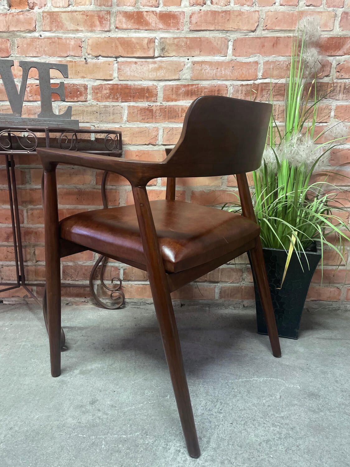 Шкіряне крісло з підлокітниками та дерев’яною спинкою