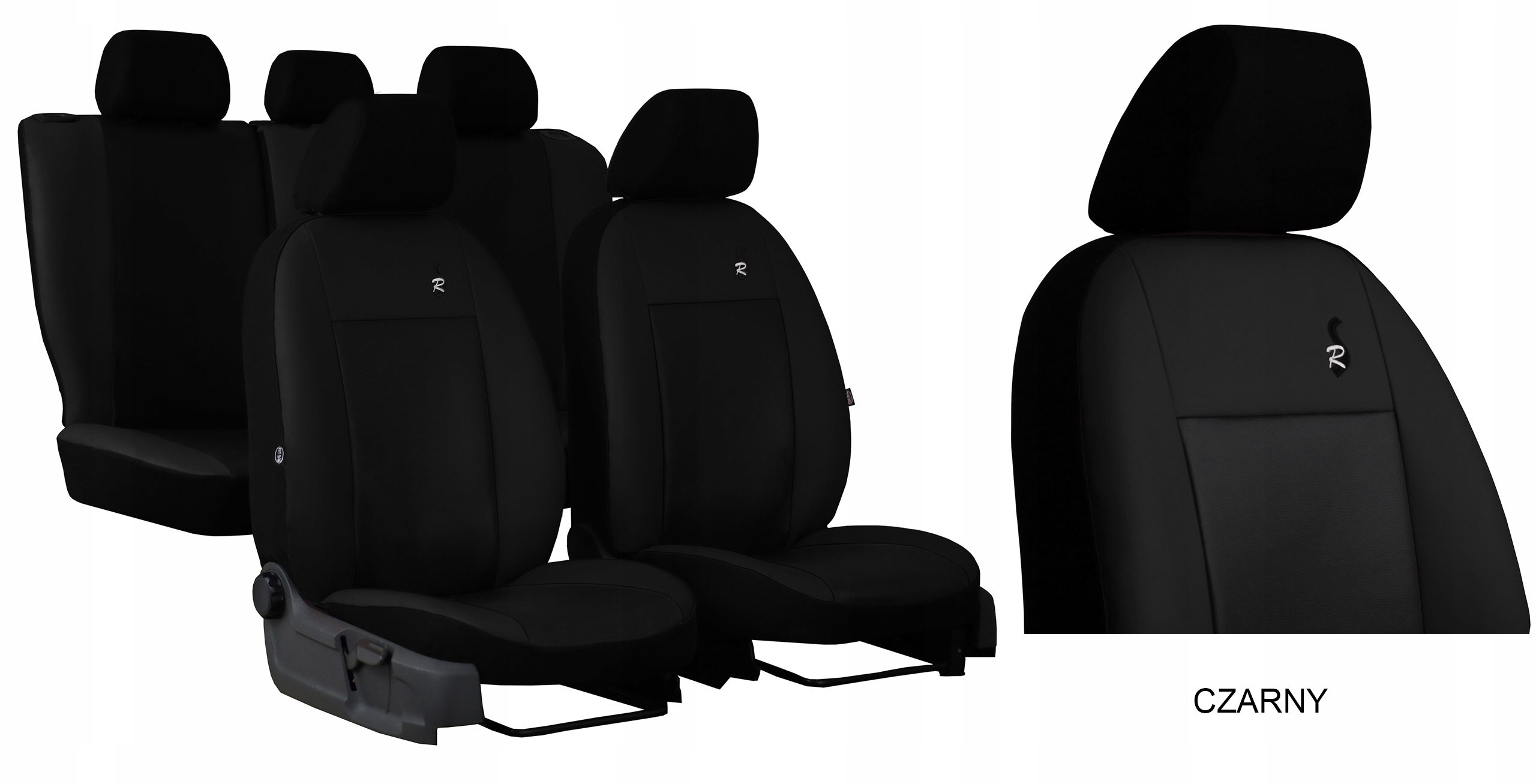 Наші чохли ROAD повністю покривають сидіння. Передня частина (спинка і сидіння) обшита екологічною шкірою. Спинка, підголівники і бічні частини чохлів виготовлені з міцного чорного матеріалу. Завдяки цьому рішенню оригінальна оббивка сидінь захищена від пошкоджень і бруду в найбільш відкритих місцях.