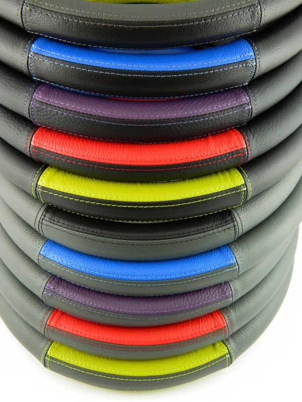 Шкіра, з якої виготовлені чохли, - це першокласна італійська шкіра. Сама шкіра нашита на гумову основу, тому ніякого ковзання чохла по керму виключається. Для пошиття чохлів використовуються спеціальні нитки для шкіри.