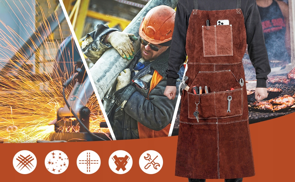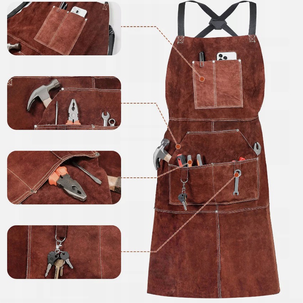 Шкіряний захисний фартух з регульованими ремінцями та 6 кишенями