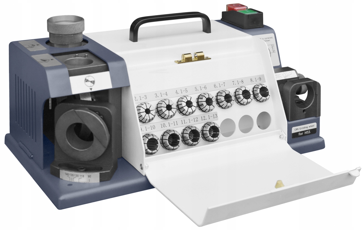 - Заточувальний верстат для свердел з HSS та кобальтової сталі.
