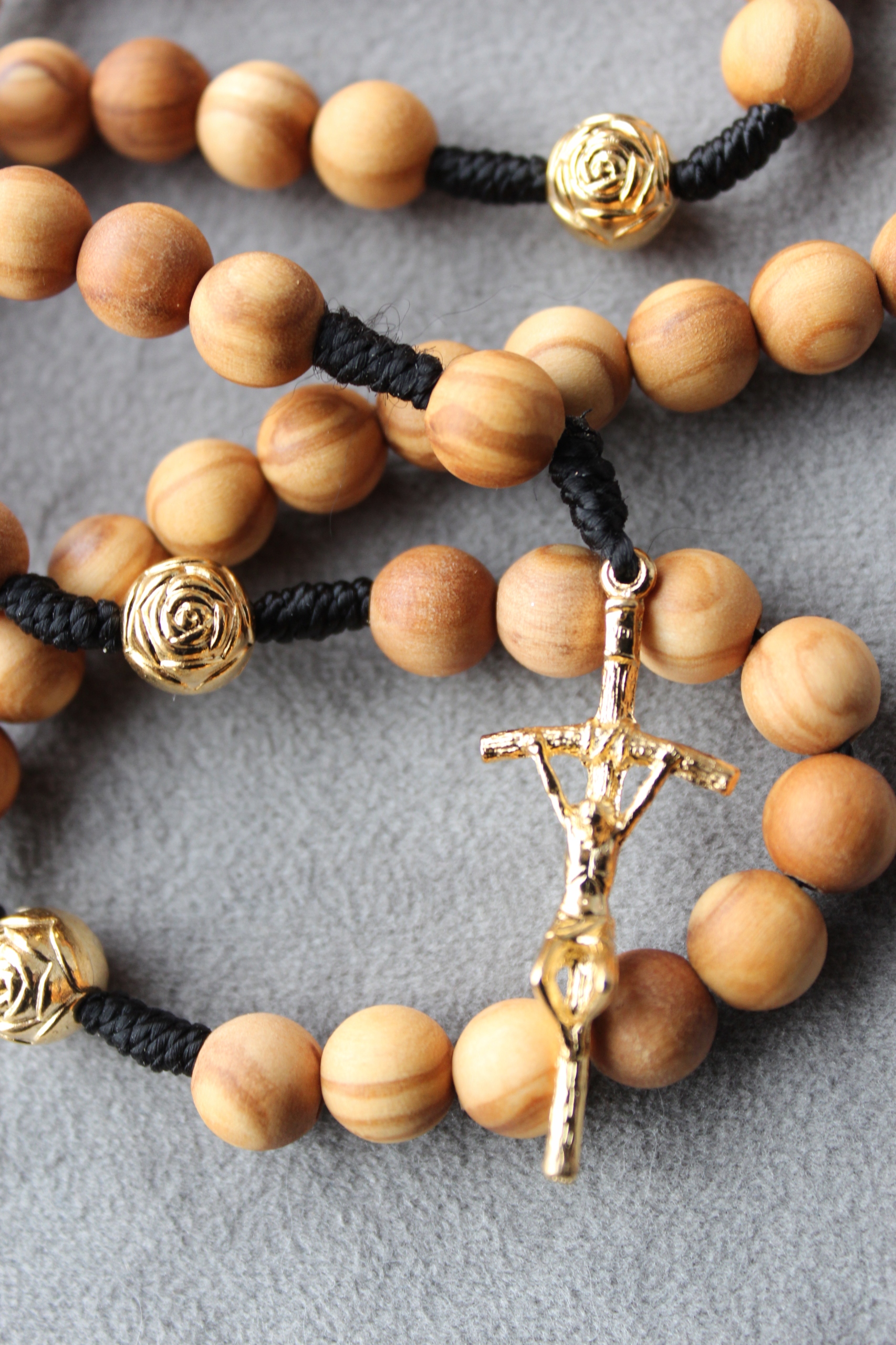 Весняний розарій, виготовлений з оливкового дерева з трояндами та папським хрестом