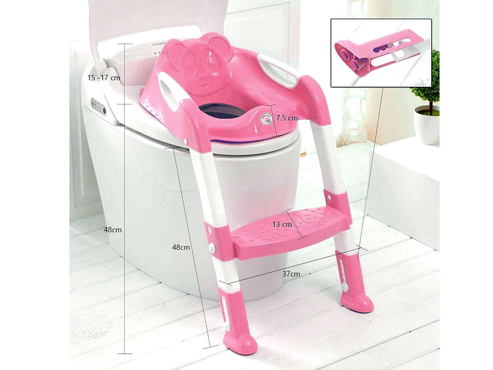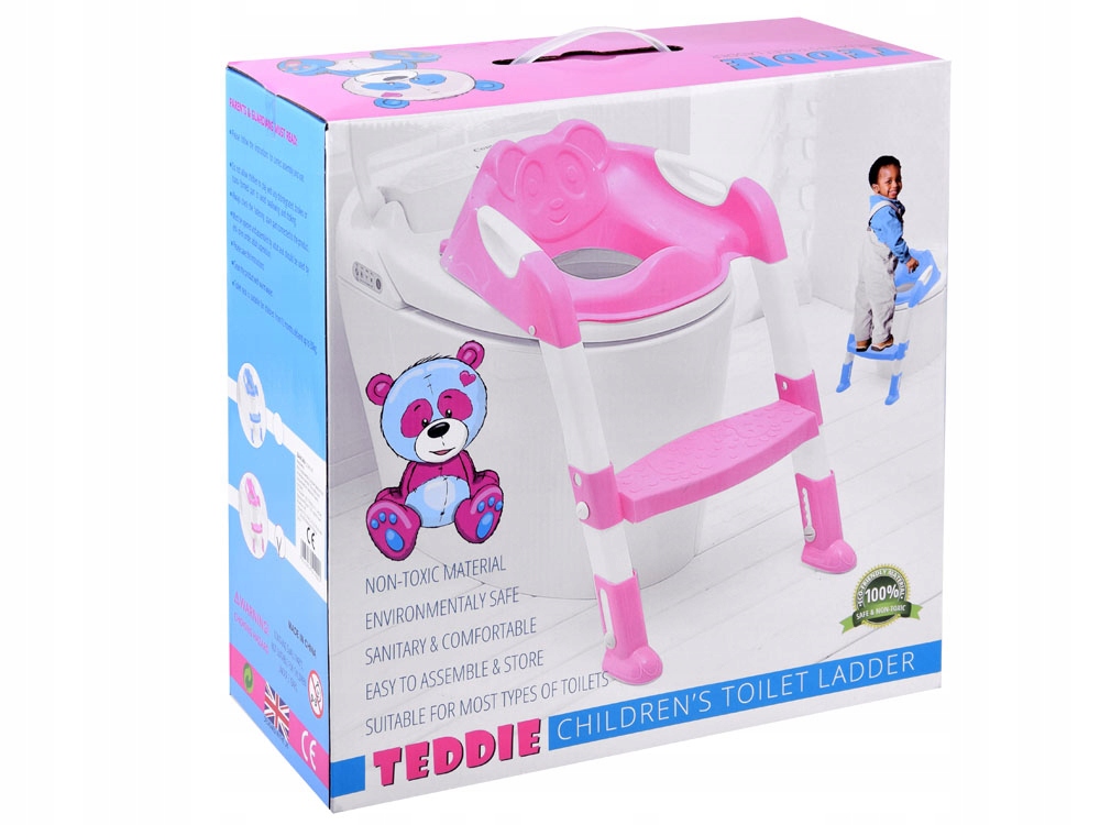 - Сидло для унітазу стане в нагоді, коли дитина завелика для горщика, але ще надто мала, щоб користуватися унітазом на своєму власна Основа складається зі сходинок з однією сходинкою та кришки сидіння унітазу. Щоб забезпечити максимальний комфорт і безпеку під час використання, ніжки і підкладка мають нековзні вставки, а підкладка додатково оснащена зручними ручками, які також полегшують посадку і вихід з підставки. Накладка на унітаз підходить для більшості сидінь для унітазів, доступних на ринку (чохол не підходить для прямокутних сидінь). Сходинки регулюються по висоті, тому підставку легко помістити в туалеті в нашому домі, а також вона ідеально підходить для відвідування бабусі чи тітки. Коли наш малюк трохи підросте, ми зможемо від’єднати сходинки й користуватися лише сидінням унітазу. Підставка легко складається, тому вона не займає багато місця і підходить навіть для невеликої ванної кімнати: висота від 60 см до 66 см, висота до сидіння від 45 см до 50 см кришка: приблизно 38 см, ширина отвору приблизно 21 см, ширина приблизно 29 см в приємних для ока кольорах. Рельєфна голова ведмедика на спинці створює дружню атмосферу та спонукає дитину до туалету. Ніжки не тільки кумедно виглядають, але й мають функцію протиковзання. Перехід від горщика до «великого» туалету – великий крок для дитини. Варто представити цю зміну в цікавій і, насамперед, безпечній для дитини формі. Пропонована підставка, безумовно, полегшить цей процес. Набір упакований в барвисту, естетичну коробку.
