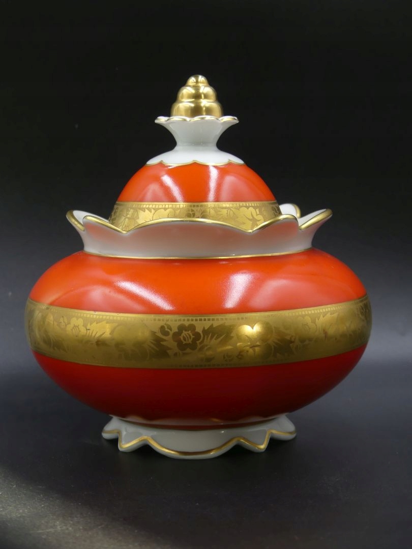 Шоколадна коробка Volkstedt, вогненна червона, атласна позолота, стан веб -сайту
