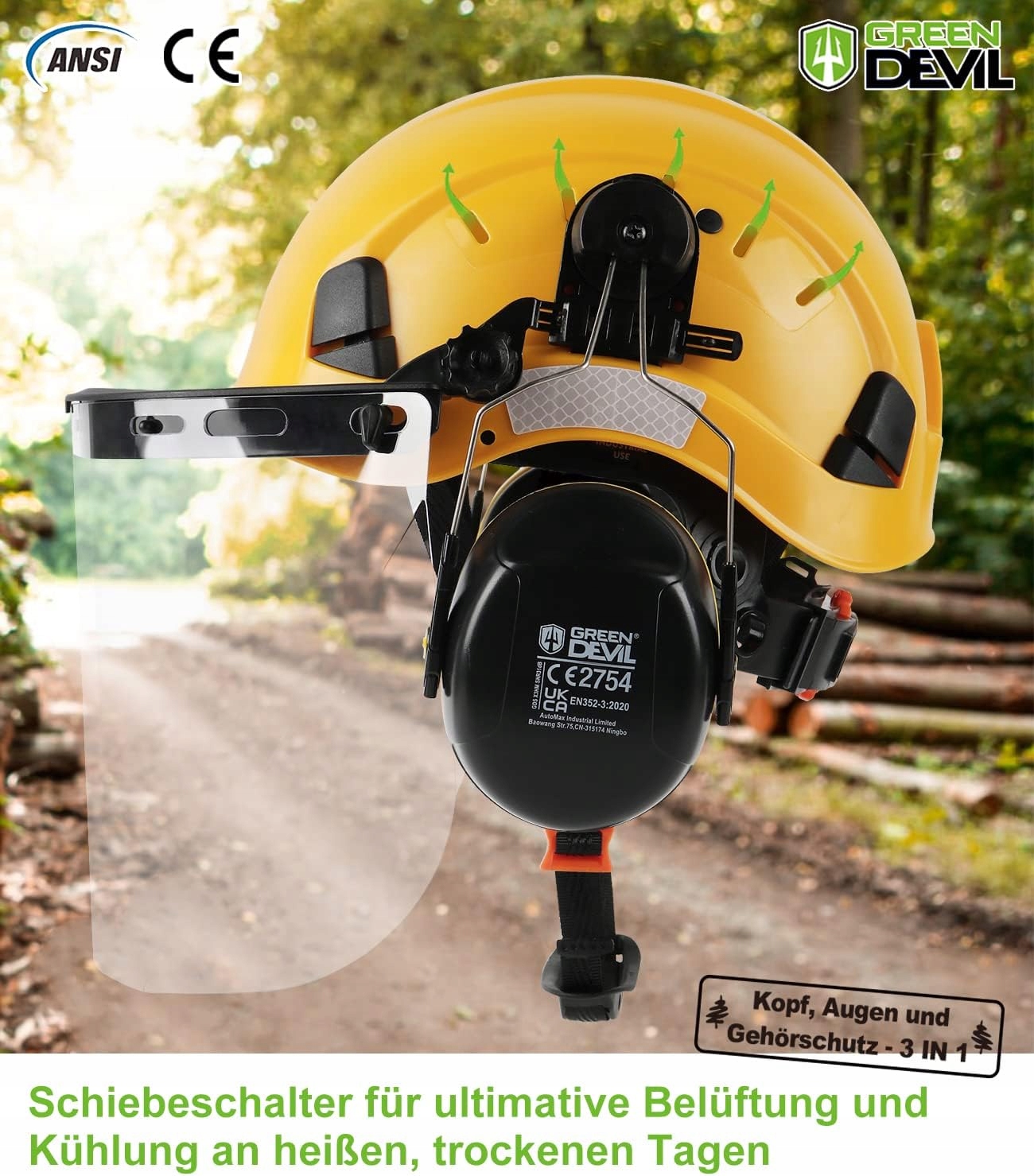 iideal для лісових робіт: Цей шолом ефективно захистить вас під час роботи садових машин та інструментів, що робить вашу роботу більш безпечною та ефективною.