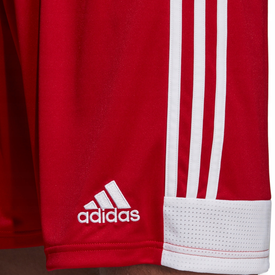 - Червоний футбольні шорти прикрашені характерними смужками на гомілці.