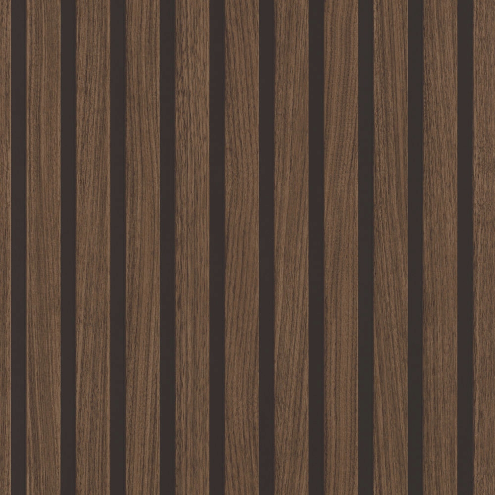 - Тло шпалер чорного кольору, а планки коричневі, що створює 3D-ефект