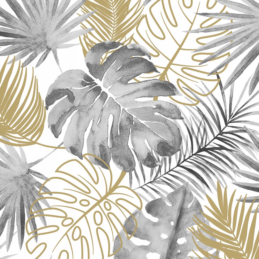 Поверхня шпалер гладка, матова. На золотих листочках є частинки блиску. Шпалери мають відтінки сірого, білого та золотого.