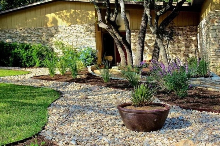Агротекстиль дозволяє Ефективне відокремлення ґрунту від поверхневого декоративного , завдяки якому він полегшує створення цікавих композицій з кори, каменів, а також крутих.