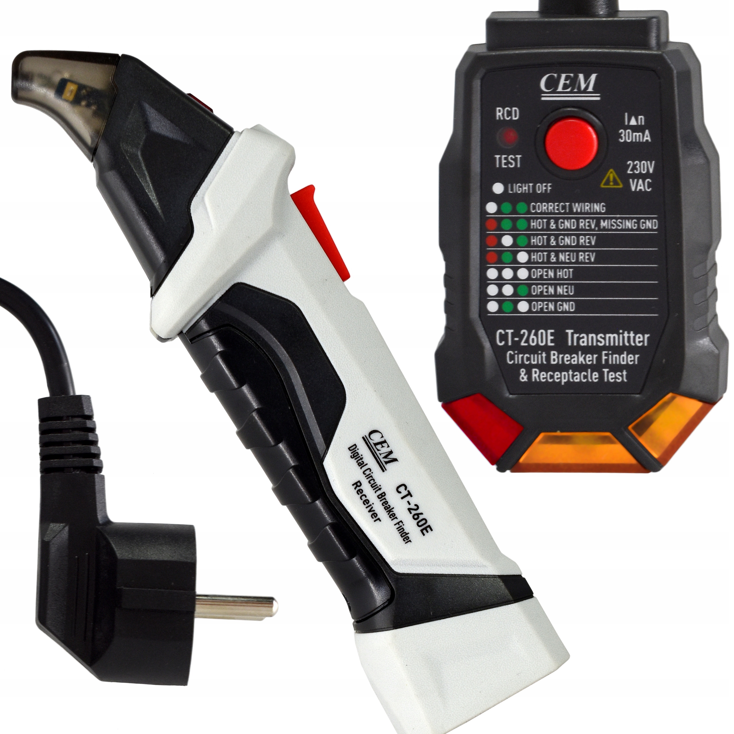 Вимірювальний пристрій CT-260E, який можна використовувати для виявлення запобіжників у ланцюзі. Він складається з комбінації передавача та приймача. Передавач генерує сигнал, а приймач знаходить запобіжник у коробці запобіжників.