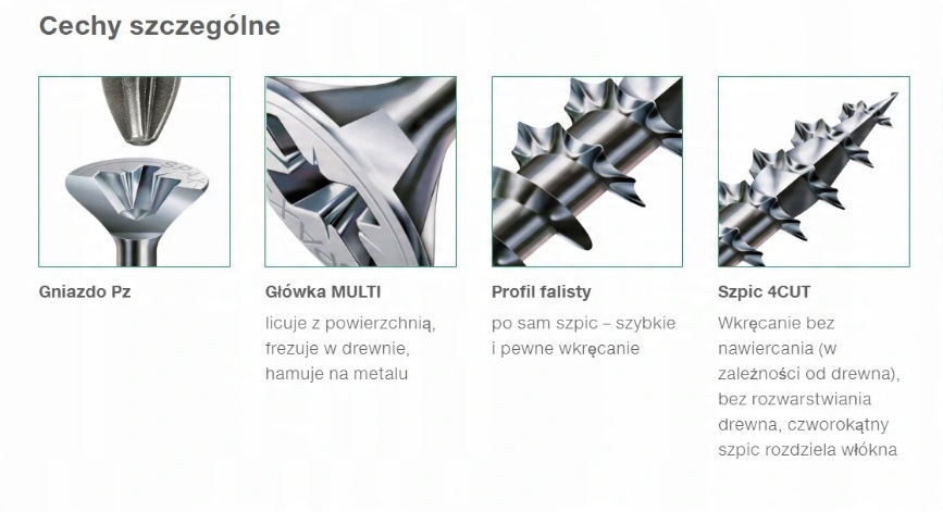 Гвинт універсальний, 5 x 50 мм, 200 штук, повна різьба, конічна головка, головка Pz2, 4CUT, - 1081010500503