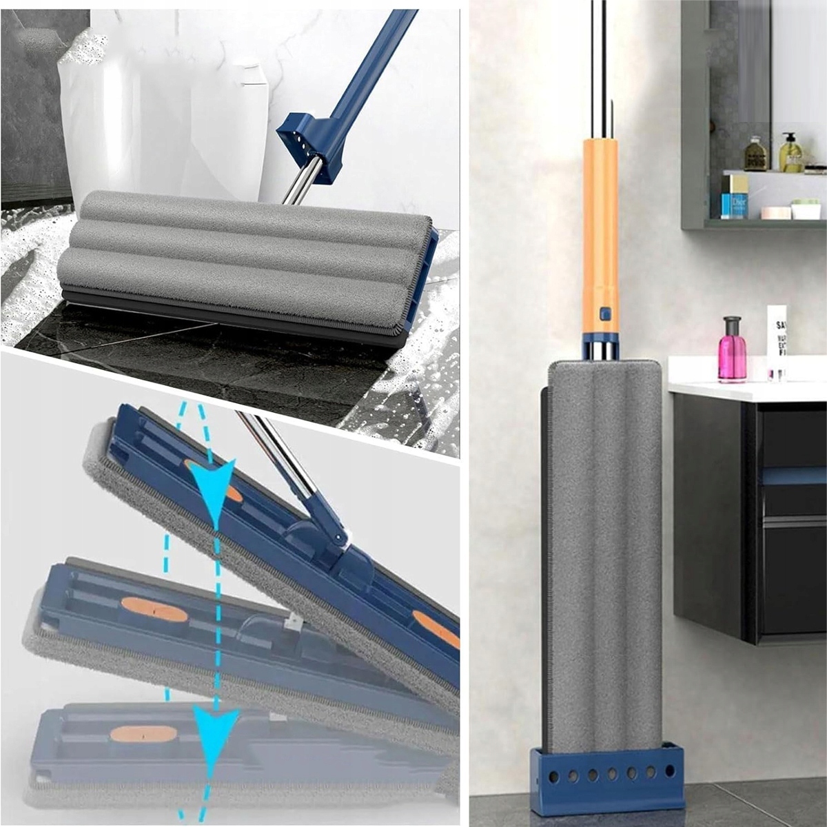 плоский -розкупований плоский швабри зі складеним відром та стислом -це практичний пристрій для очищення. МОП оснащена чудовою та абсорбентною тканиною мікроволокна.