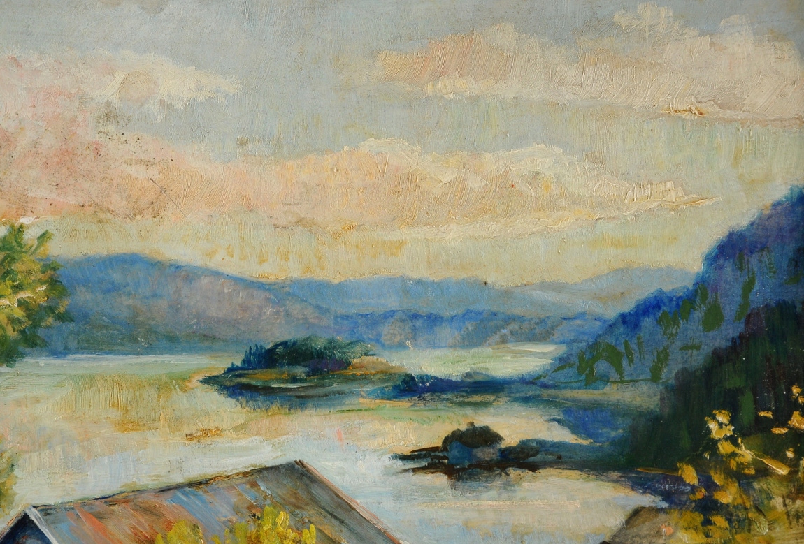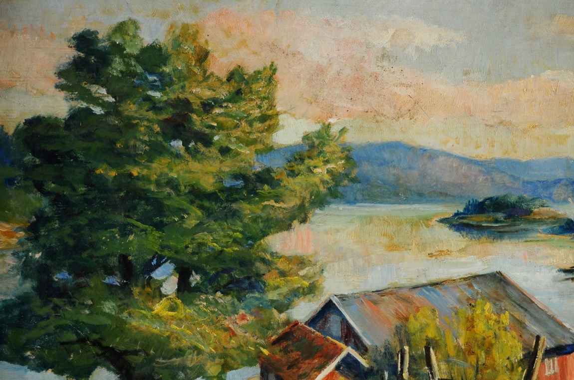 ШВЕДСЬКІ БУДИНКИ БІЛЯ ОЗЕРА КРАСИВА МАСЛЯНА КАРТИНА!
