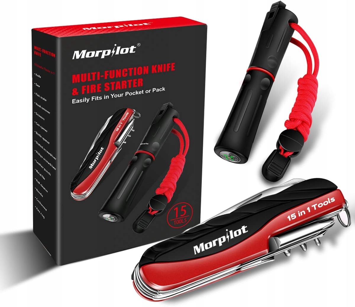 15 в 1 швейцарському ножі - містить плоску викрутку, банку, штопор, шкірку для риби, пристрій для видалення гачка, ключове колесо, ніж, шкіряний отвір, очищення нігтів, металевий файл, голка, перехресна викрутка, пила, ножиці. ❤4 в 1 Firestteel - містить рятувальний свист, мотузку на шиї, кремінь, компас; Висока стійкість до води, пожежі та олії; Флінт також працює у вологих, дощових, холодних та вітряних умовах. ❤ Ретельно підібраний матеріал - Флінт виготовлений з магнію та корпусу ABS; Швейцарський ніж виготовлений з високоякісної нержавіючої сталі, він дуже міцний і може ефективно запобігти окисленню, що гарантує тривалий термін експлуатації. ❤ Точність та портативна - швидка орієнтація можлива завдяки інтегрованому компасу на вогневій сталі; Компактний розмір полегшує розміщення в кишені або рюкзаку; Вони є ідеальними супутниками не лише для альпінізму, походів, виживання, на свіжому повітрі, кемпінгу, подорожей, але і для домашнього використання. ❤ Діапазон доставки - 1x Morpilot Fire Steel, 1x Multitool Morpilot 15 в 1, 1x Посібник користувача,
