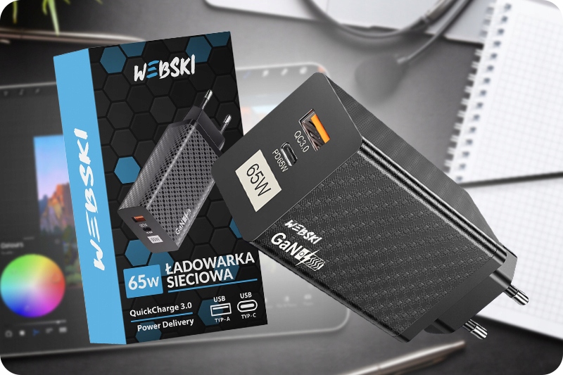 Найпотужніший мережевий зарядний пристрій - Webski ProGaN - 65W POWER, USB TYPE C PORT, USB-A PORT, POWER DELIVERY, QUICK CHARGE 3.0, технологія GaN - для зарядки мобільних пристроїв і ноутбуків