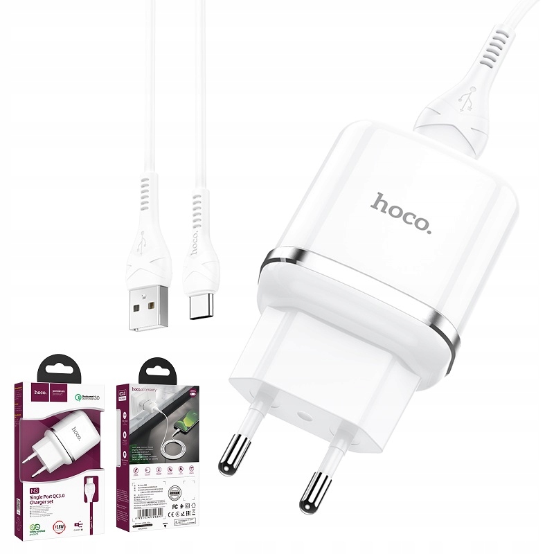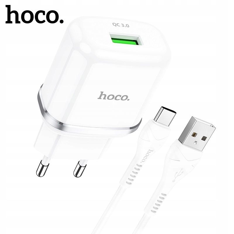 ШВИДКИЙ ЗАРЯДНИЙ ПРИСТРІЙ 3.0 3A QC + КАБЕЛЬ USB ТИПУ C HOCO