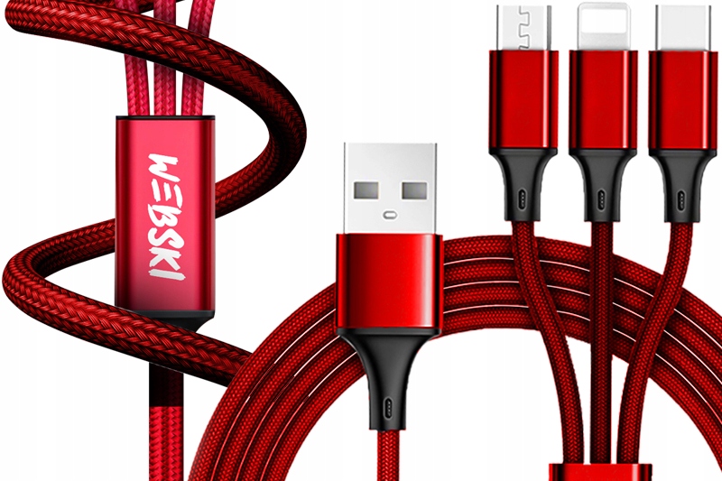 Міцний нейлоновий кабель USB із опліткою з трьома різними типами роз’ємів серії WEBSKI® PRO.