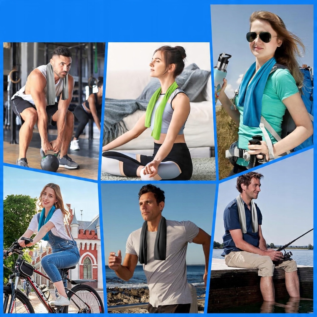 Завдяки спеціальній технології випаровування вологи рушники швидко охолоджують тіло, забезпечуючи відчуття свіжості та комфорту. просто змочіть їх водою, а потім відкрутіть їх- ефект охолодження триває тривалий час.