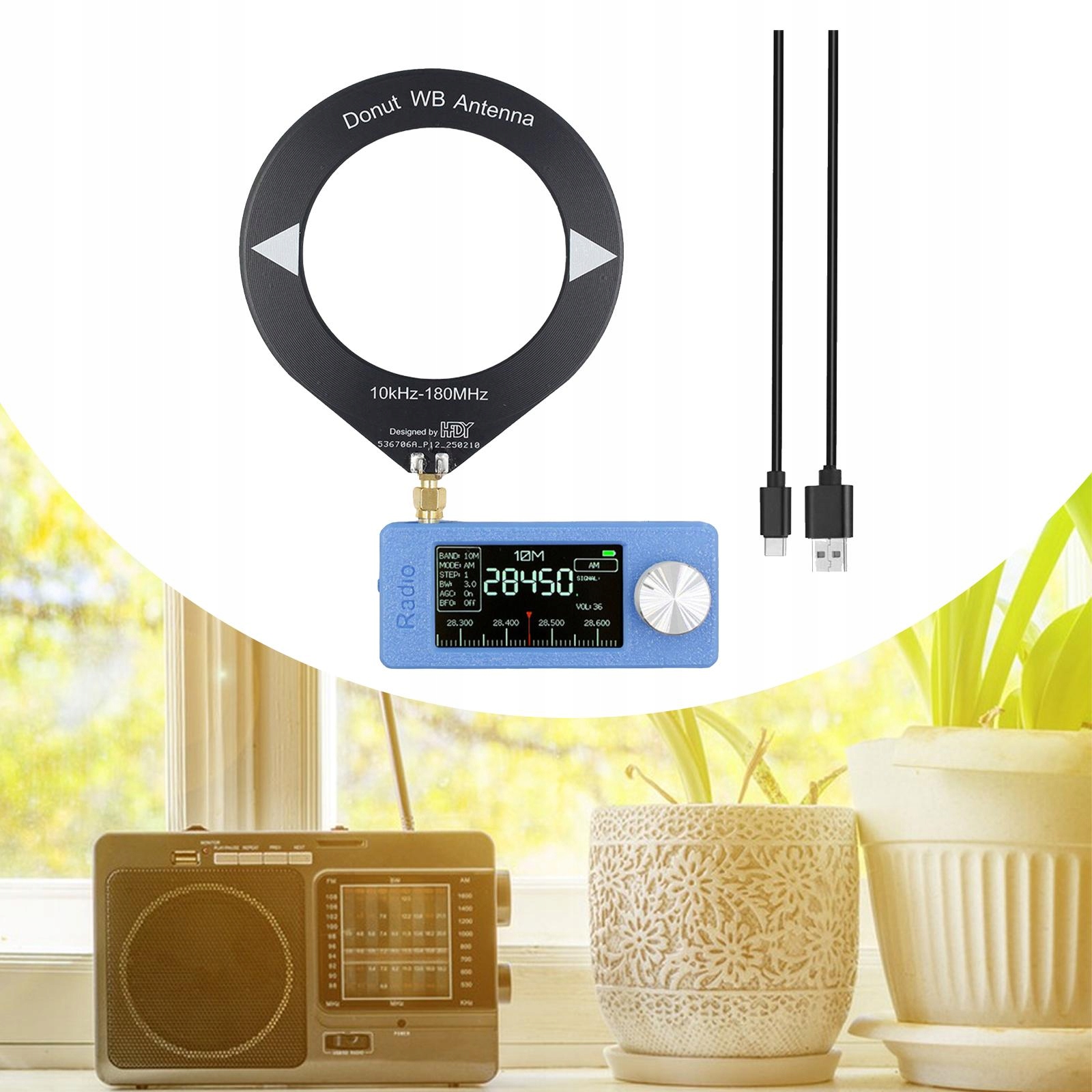 [антена циклу]: Це портативне радіо оснащене циклною антеною, яка значно збільшує можливості отримання 10 кГц до 180 МГц, забезпечуючи чисту якість звуку