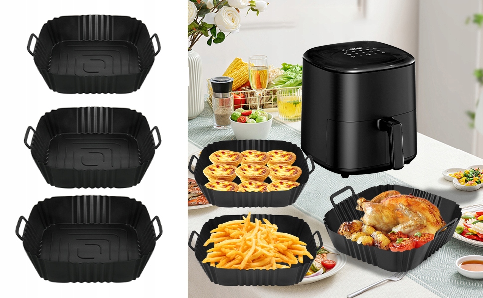 🥩🍗n є для квадратних кошиків для смаження з 7 до 9 дюймів (3 літри до 6,5 літрів) і сумісні з Philips Essential Airfryer 4.1L, Philipsfryer 2000 4.2L/6.2l, Frykewną raorce. Cosori 3.8-4.7L, Ninja Pro Hot Air Fryer 4.7L ITP.