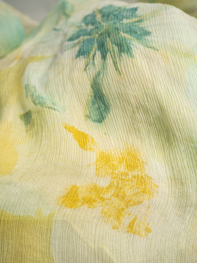Топ + натуральна спідниця з шовку. Делікатне поєднання пастельних відтінків жовтого та зеленого.