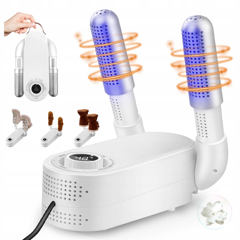 ipes. Опалення та стерильність Szybkie: Наш розумний осушувач оснащений технологіями швидкого нагрівання та стерилізації фіолетовим світлом, що забезпечує швидке стерильне висихання. циркуляція гарячого повітря в діапазоні 360 ° забезпечує точне висихання кожної частини взуття, включаючи ділянки пальців та підборів. Завдяки інтелектуальному контролю температури та перемикачам часу ви можете адаптувати процес сушіння до своїх потреб. 4 Він досягає кожного куточка взуття, завдяки якому немає радіо -отворів. Від високого взуття до шкарпеток - наші сушарки легко впоратися з різними видами взуття.
