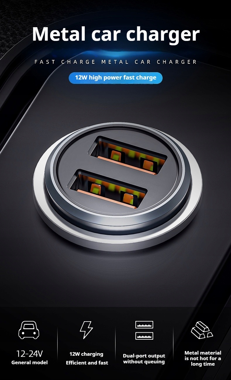 Сильний автомобільний зарядний пристрій 2USB 12W з функцією зарядки та захисту.