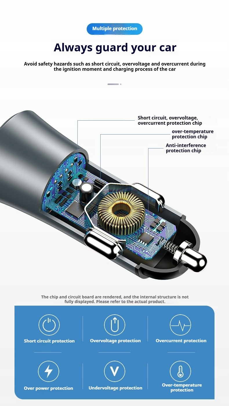 ⚡ Двосторічна інтелектуальна зарядка: одночасна швидка зарядка для водія та пасажира (сумісна з Huawei/iphone/samsung)