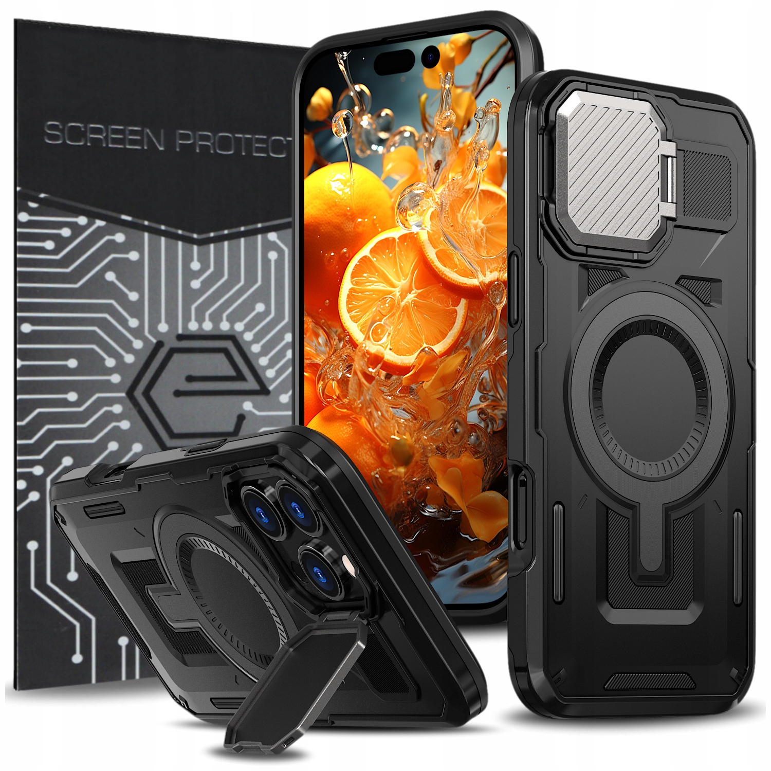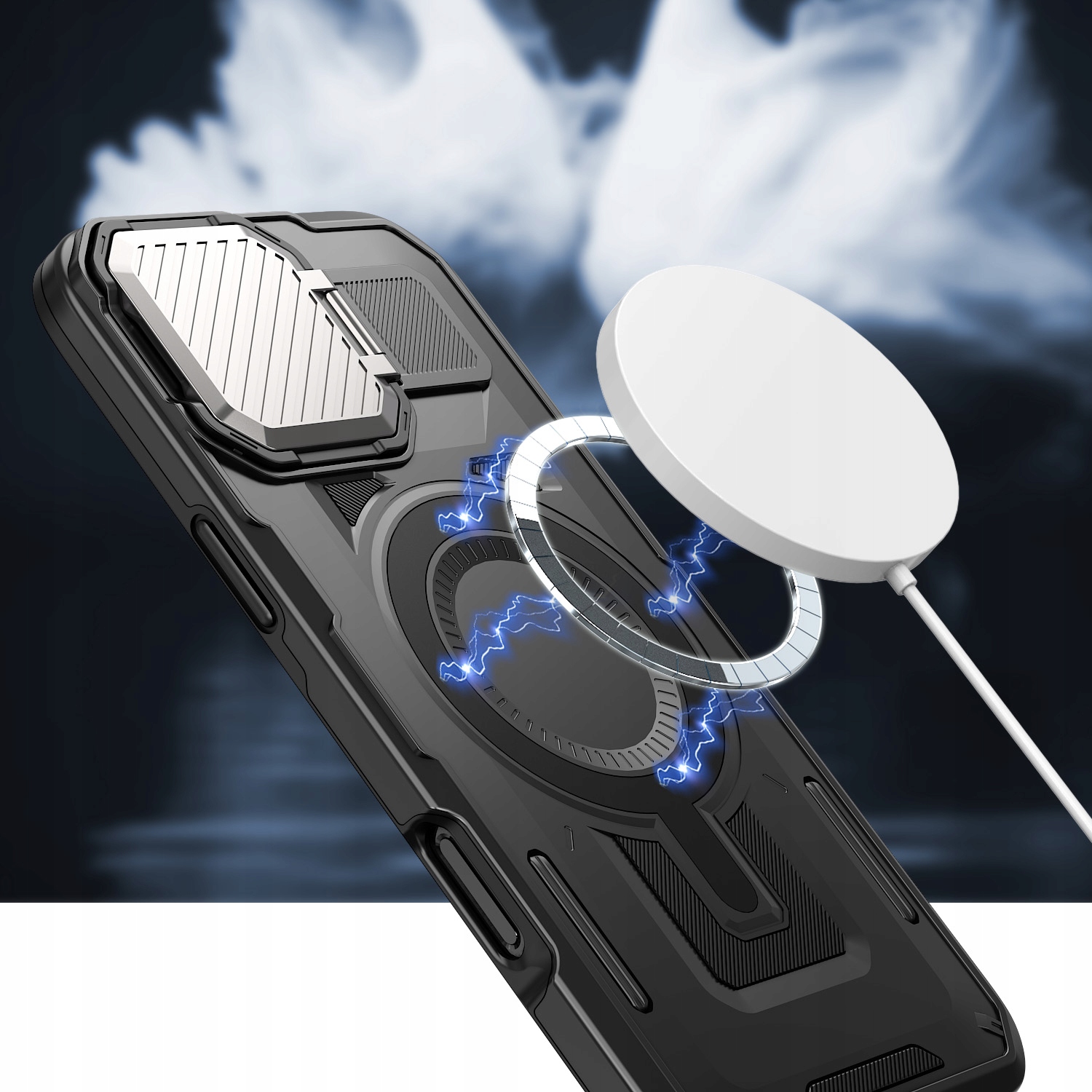 прес броня mag - це аксесуар, який забезпечує високий рівень захисту в поєднанні з сучасним дизайном. Виготовлений з високоякісних матеріалів, які ефективно захищають ваш телефон від ударів, подряпин, падінь та інших механічних пошкоджень. Інноваційна, металева кришка камери , підкладена м'яка мікроволокна , гарантує додатковий захист лінз камери від подряпин та пилу. Закриття обкладинки збоку забезпечує швидкий доступ, коли вам потрібно сфотографувати або записати фільм. Крім того, він також служить зручною підставкою, що дозволяє використовувати телефон у горизонтальному положенні. Побудований -Магнітне кільце magsafe дозволяє швидке та певне вкладення аксесуарів, сумісних з цією технологією, такими як зарядні пристрої (працює лише з телефонами, що підтримують зарядку індукції), гаманці або ручки автомобіля . Магніти, вбудовані в корпус, належним чином розташовані, щоб забезпечити ідеальне пристосування та стабільність встановлених додавання -они. Ring magsafe не впливає на ваше щоденне використання, а самі аксесуари можна легко та швидко прикріпити та демонтувати.