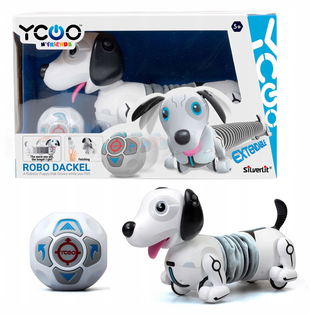 Robo Dackel - це солодкий такс із Сільверліта, який завжди буде тримати крок дитини! Собака виконує безліч різних рухів та хитрощів, завдяки якому весело принесе ще веселіше. Торкнувшись головою собаки, подивіться, як його тулуб розтягується і скорочується! Багатофункціональний пілот дозволяє направляти цуценя в вибраному напрямку! Так само, як справжній собака гавкає і махає хвостом, коли він щасливий!