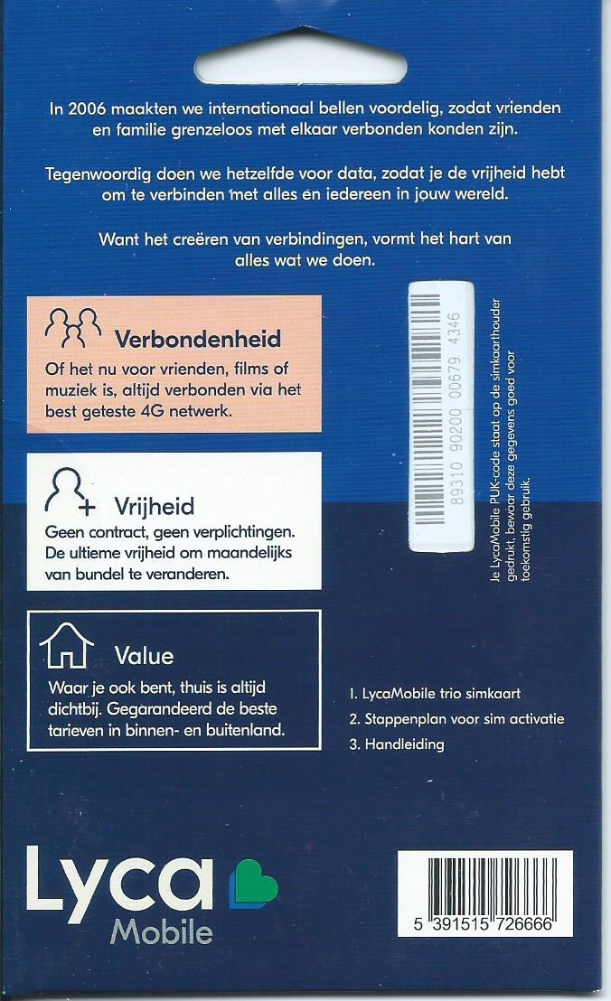 SIM Starter Lycamobile Card голландська Нідерланди NL 10 € Бонус