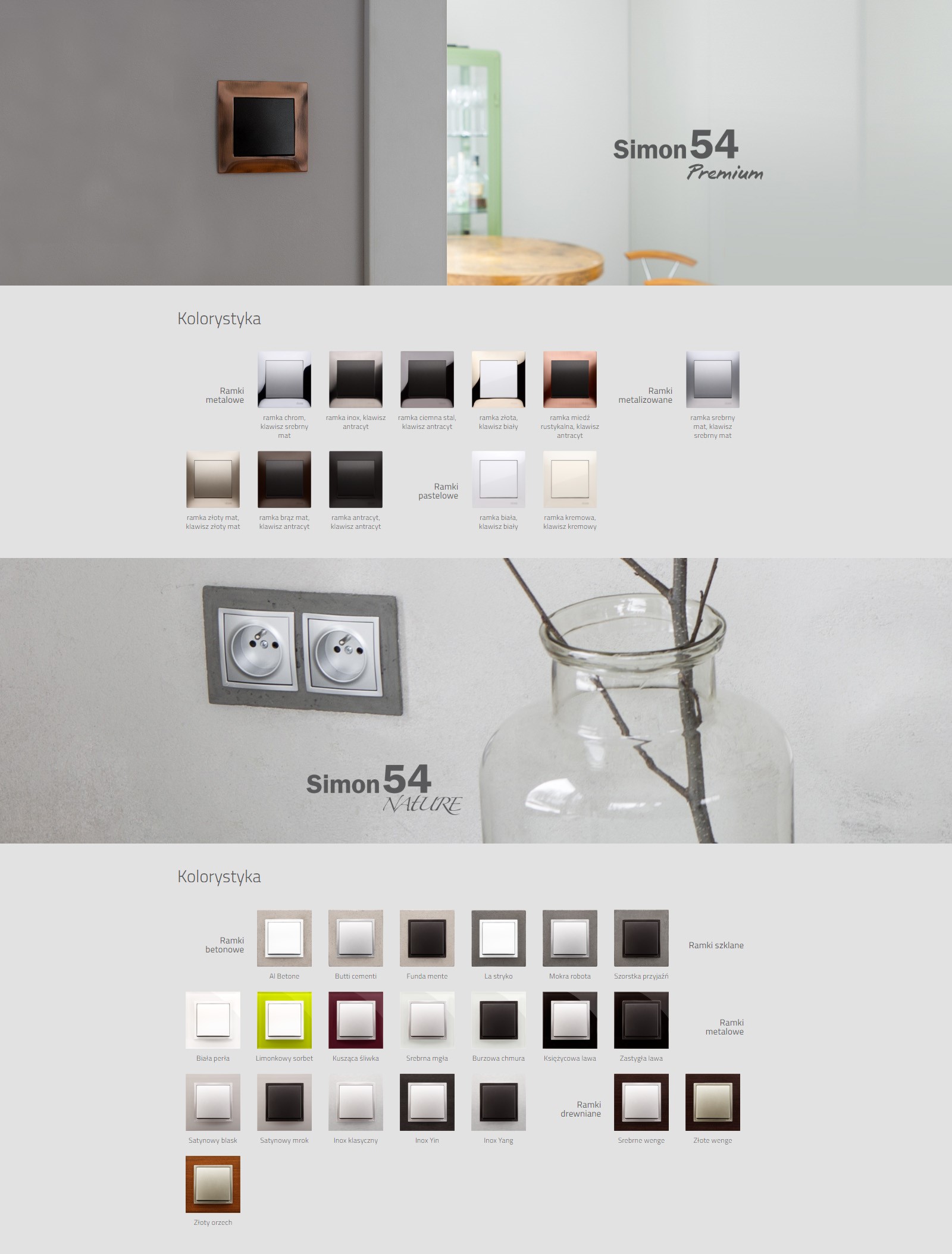 Електрична установка, заснована на новому, надійному та встановленому -фірмовому механізмах, розрізненому небезпечній формі. Можливість встановлення в одиночні, подвійні, потрійні, чотириразові та п’ять разів лише від серії Simon54.