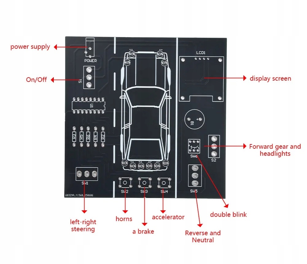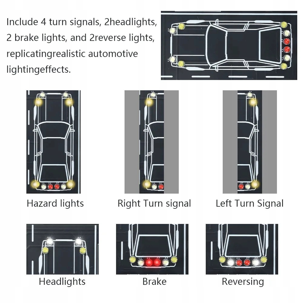 Моделювання справжньої функції автомобіля: Після підключення джерела живлення воно може виконувати функції індикатора лівого та правого напрямку, фари, гальмування вогнів та зворотних вогнів, а також завдяки дисплеях спідометра дуже добре відтворює враження від роботи автомобіля.