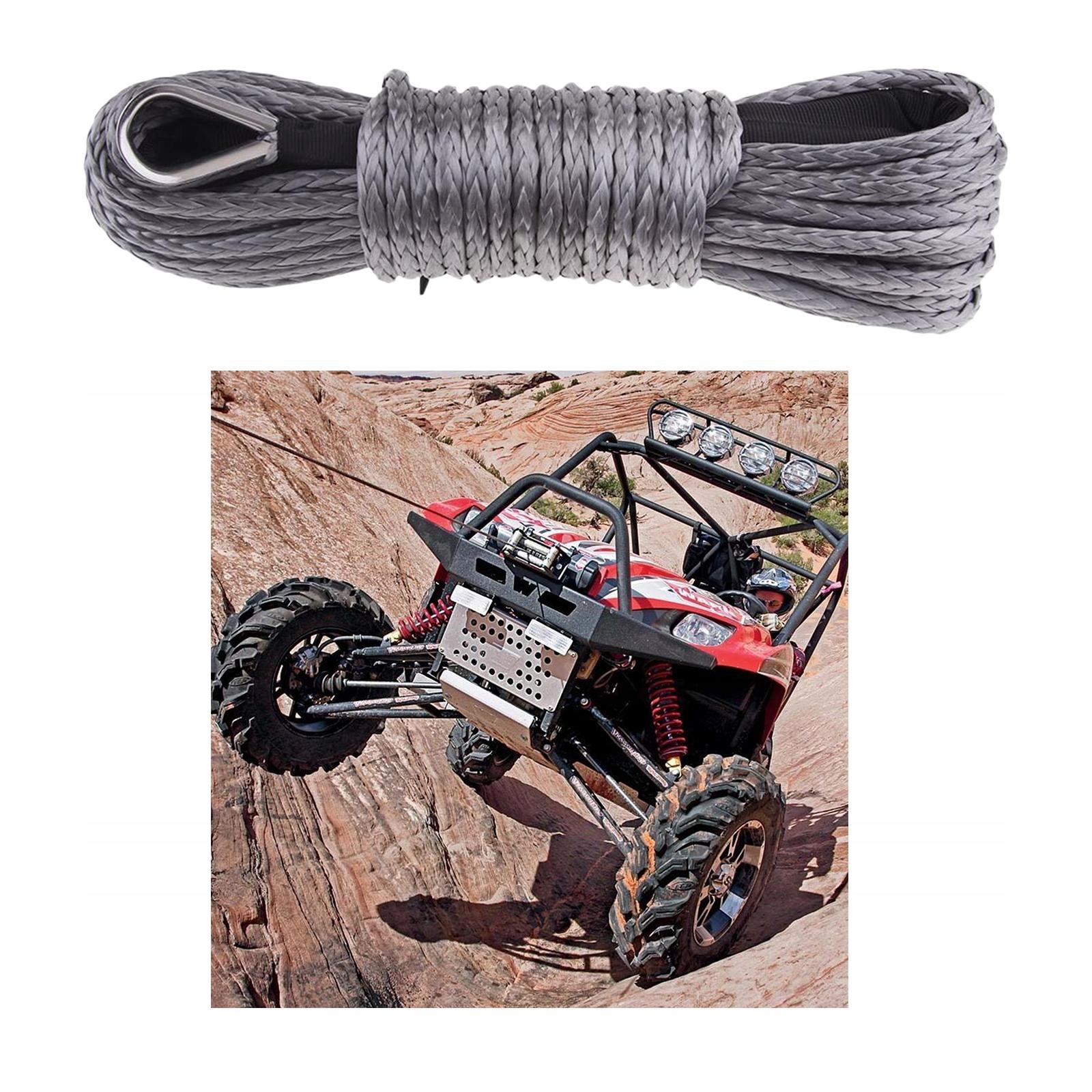 Трос для лебідки із синтетичного волокна 6 мм x 15 м для квадроциклів UTV для ремонту човнів сірого кольору